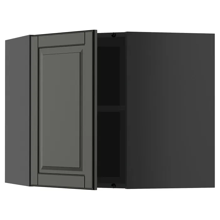 IKEA METOD(995.868.46) Угловой настенный шкаф с полками, Царношари/Бодбин Блэк