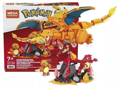 Набор конструктора MEGA CONSTRUX BLOCKS, 313 деталей, фигурка покемона Чармандер (эволюция), HFG06.