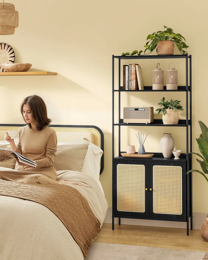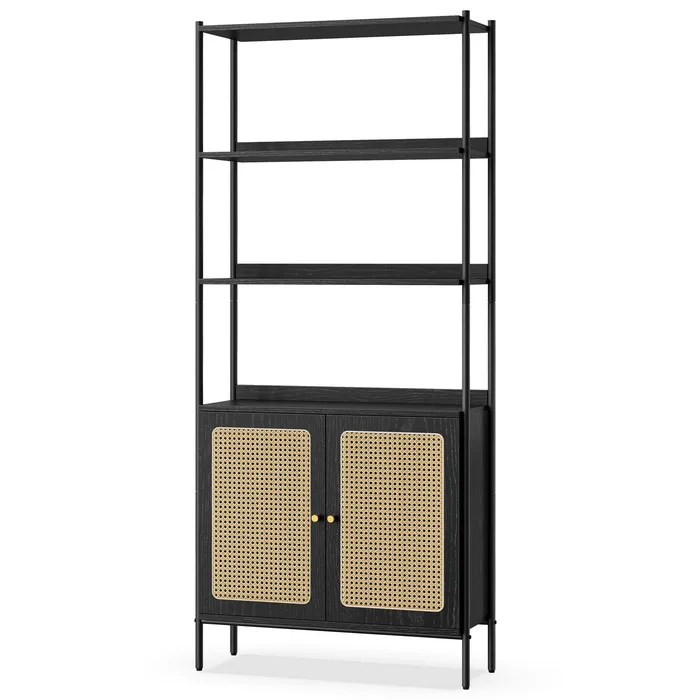 Черный книжный шкаф с шкафом из 6 полков из 6 полков