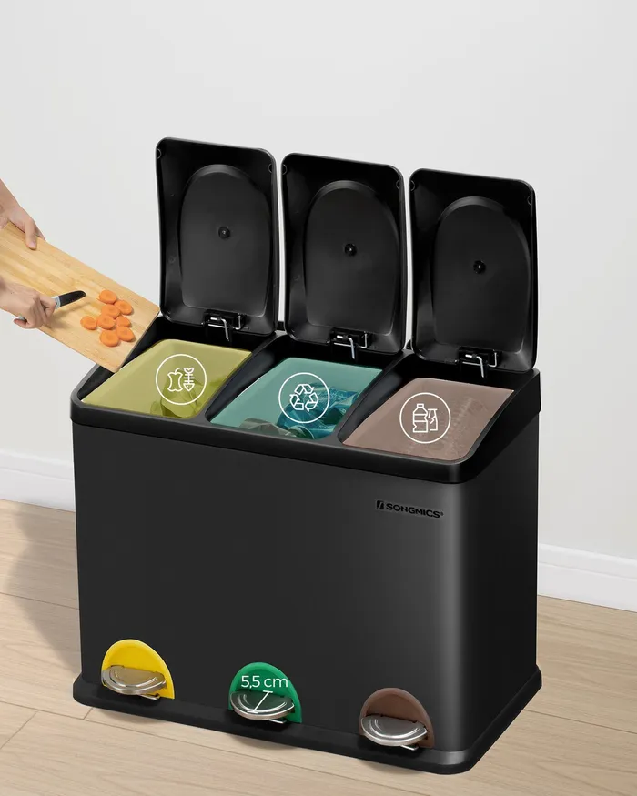 Черный мусорный корзин 3 камеры x 15 л.