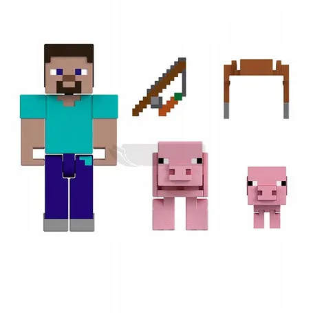 Фигурка Стива из Minecraft, пиксельная фигурка, свиньи + аксессуары HTL88