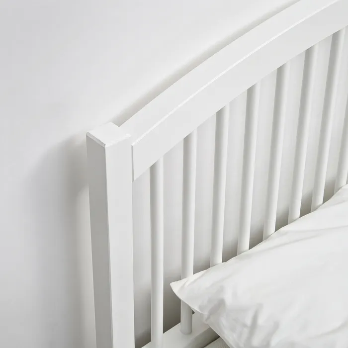 Цельные деревянные перекладины и резные ножки выражают мастерство и делают каркас кровати прочным и долговечным.