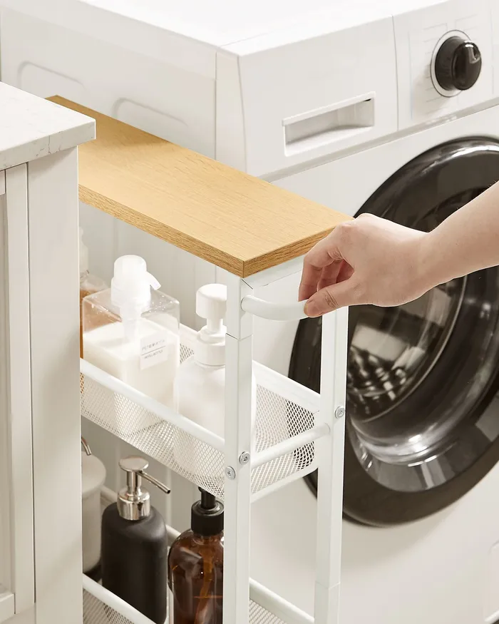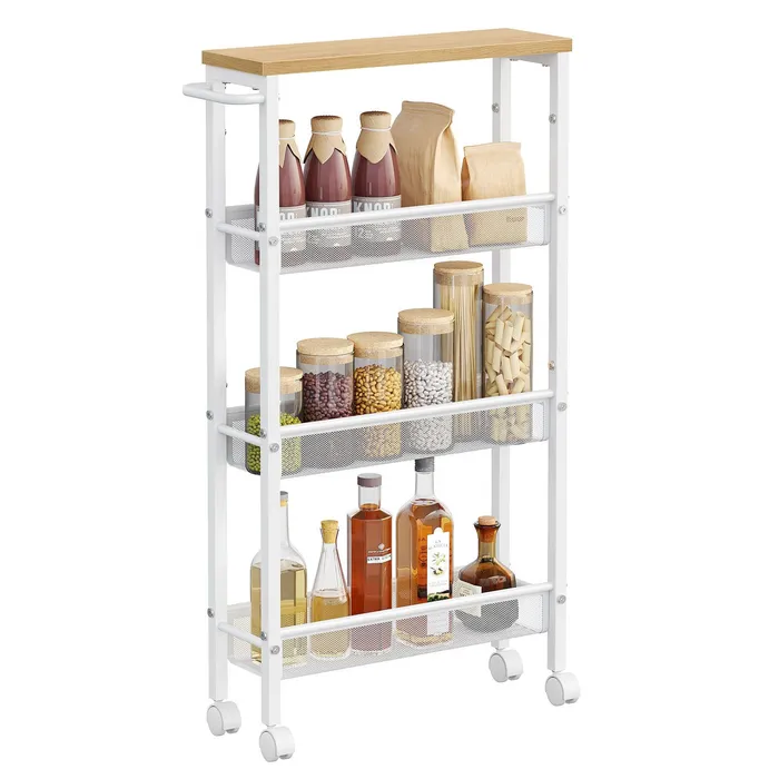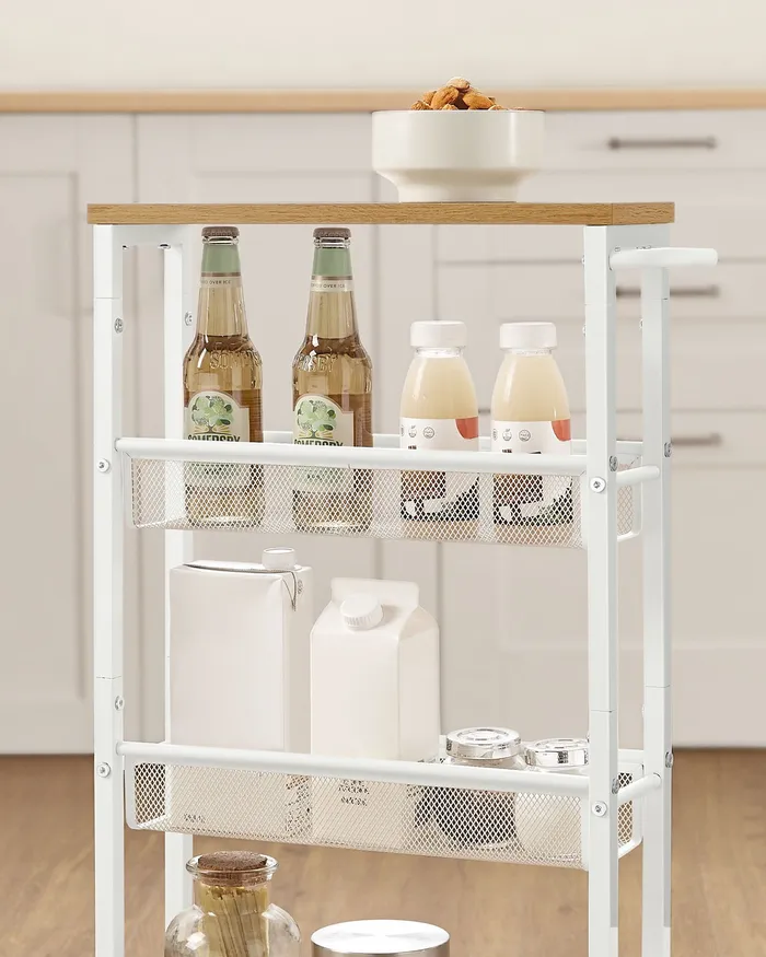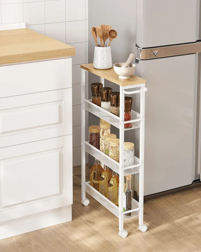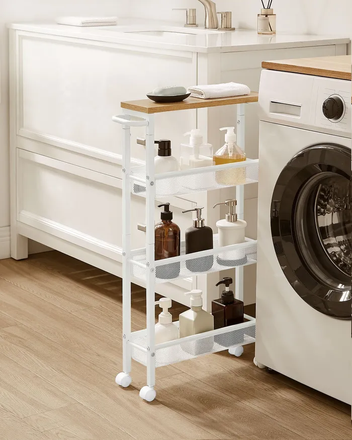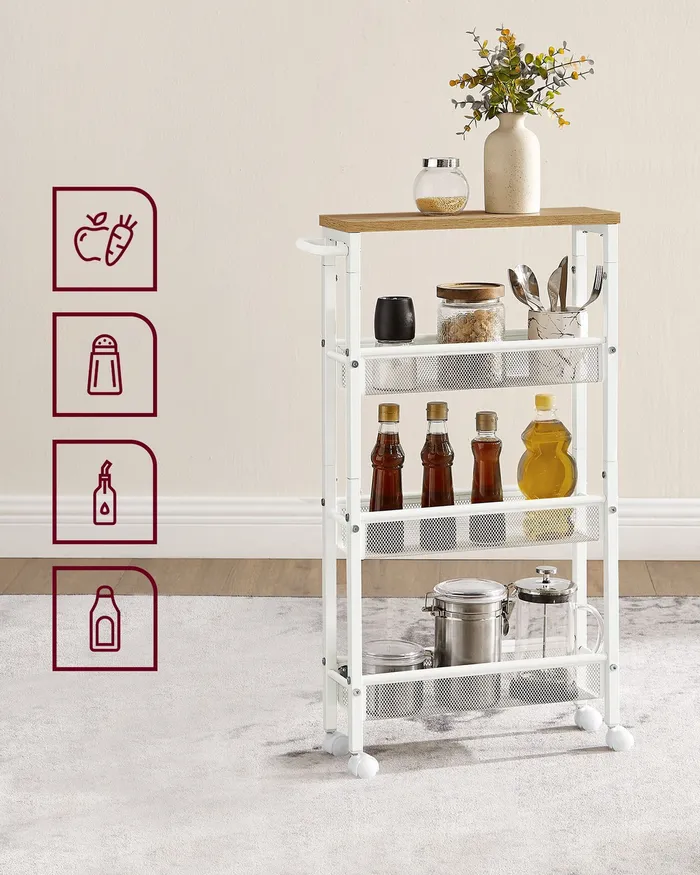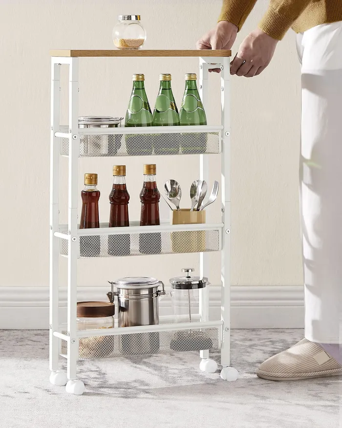 Мобильная узкая коляска с 4 полками белые