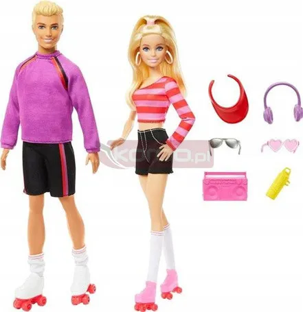Набор кукол Барби и Кен на роликовых коньках: две куклы + аксессуары HXK90