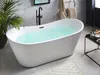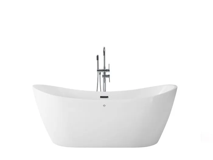 Прекрасная отдельно стоящая ванна добавит элегантности вашей ванной комнате. Он отличается плавными линиями и привлекательной овальной формой. Ванна немного выше на обоих концах, что обеспечивает полный комфорт. Он имеет акриловую непористую белую отделку для легкой очистки. Его конструкция усилена стекловолокном для долговечности. Широкая глубокая ванна обеспечивает комфортное неторопливое купание.