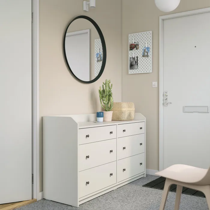 Розмістіть його в спальні або будь-де в будинку, окремо або з іншими меблями серії HAUGA. Цей широкий комод пропонує багато місця для зберігання, а верх ідеально підходить для найцінніших речей.