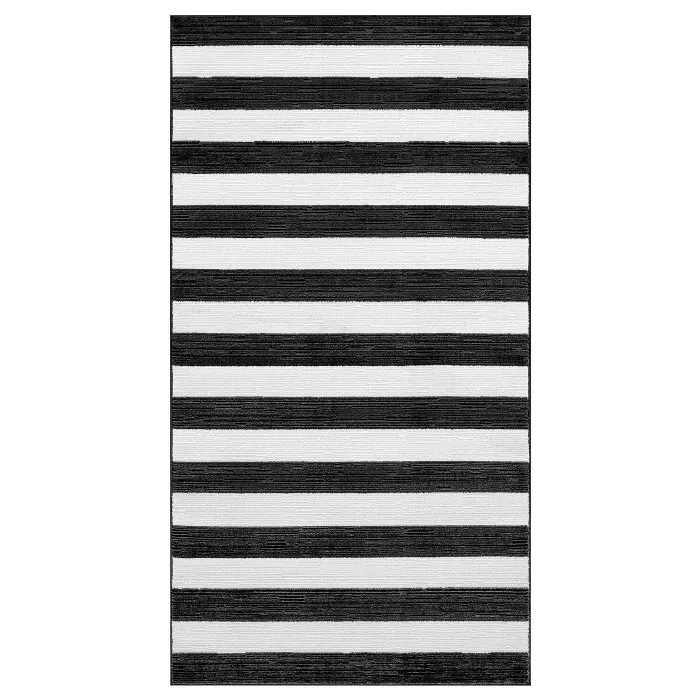 Килим у позачасовій чорно-білій смужці ideal для кухні, передпокою, спальні або де б ви не хотіли принести трохи м'якості та характеру. Простий спосіб оновити будь -який інтер’єр.