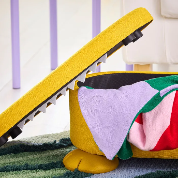 Пуф з місцем для зберігання підходить як для дитячої кімнати, так і для вітальні. Коли він не їсть іграшки, його можна використовувати як сидіння для дітей і як підставку для ніг для дорослих. Переверніть стопи для вічного вигляду.