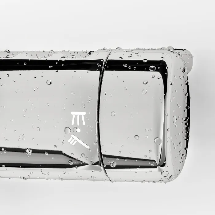 Дощовий/ручний душ із повним потоком і підвищеною потужністю розпилення. Обмежувач температури до 38°C запобігає перегріванню води, а функція «cold touch» підтримує безпечну температуру змішувача.
