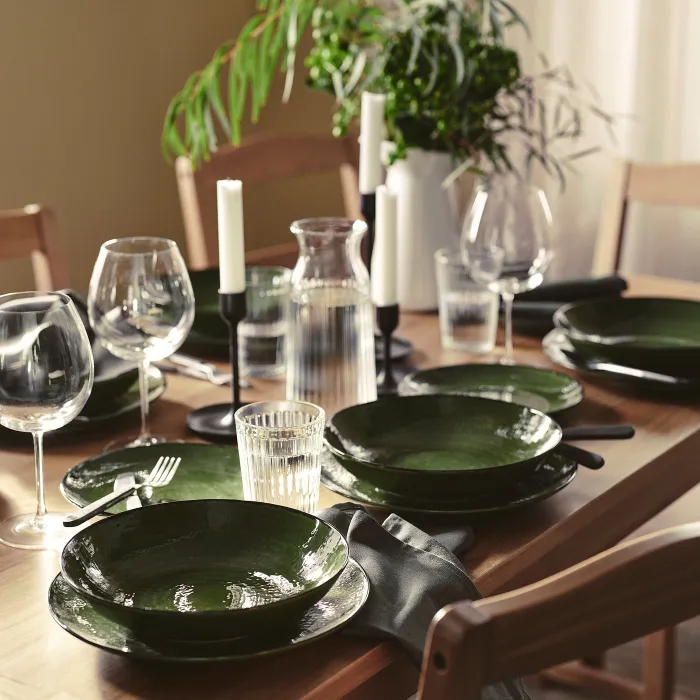 Лісовий зелений та прекрасна форма посуду Пеларка Пеларка приносить на столі природний акцент та змінює щоденні вечері та бенкети вихідних у виняткові випадки.