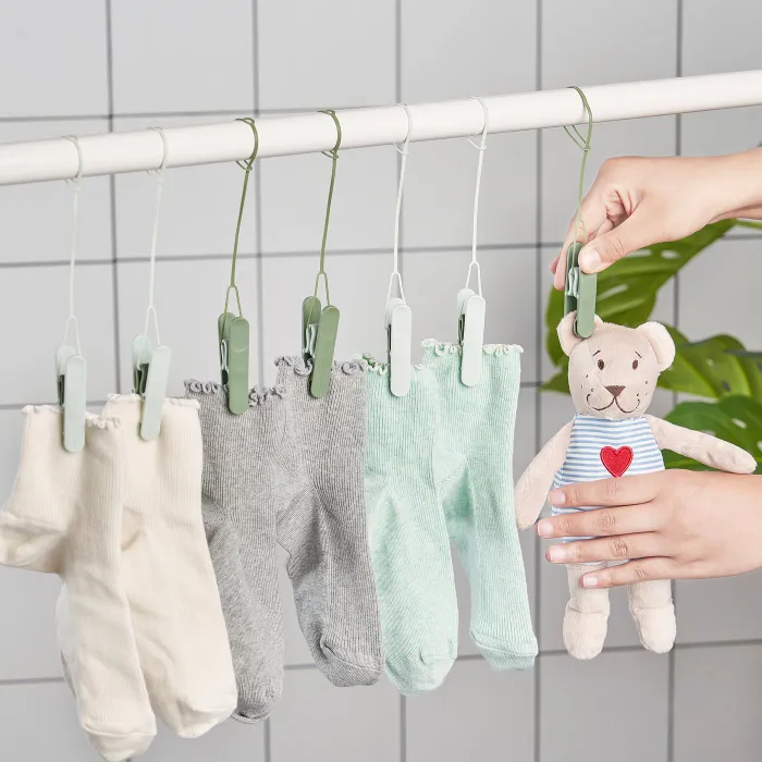 Завдяки кліпам ви можете легко повісити мокрі речі на вішалці, струні або стоячій сушарці.