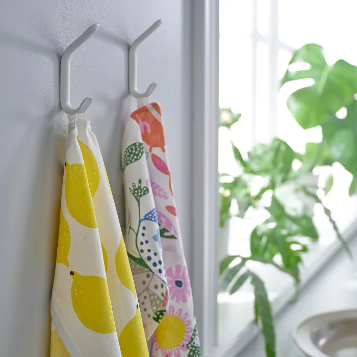 Вам потрібна сумка для сумки та піджак у передпокої чи фартух та тканина на кухні? Ось ти! Елегантний подвійний гачок, виготовлений з білого розписаного металу, крім того, що з прихованими кріпленнями буде виглядати однаково чудово.