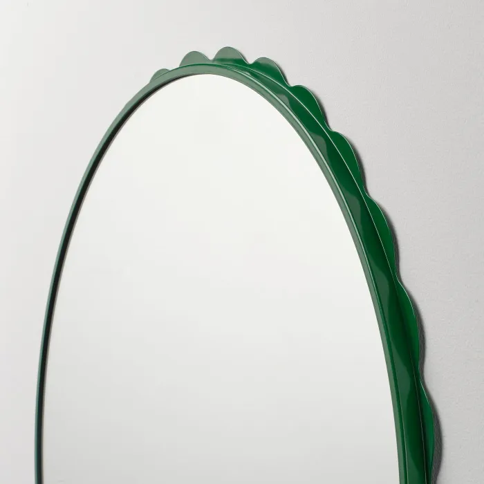 Чарівне дзеркало з гофрованим краєм робить кожен образ незабутнім. Відповідає фотополиці з тієї ж серії. Виберіть дзеркало в зеленій рамі, щоб додати природного акценту у вашій оселі.
