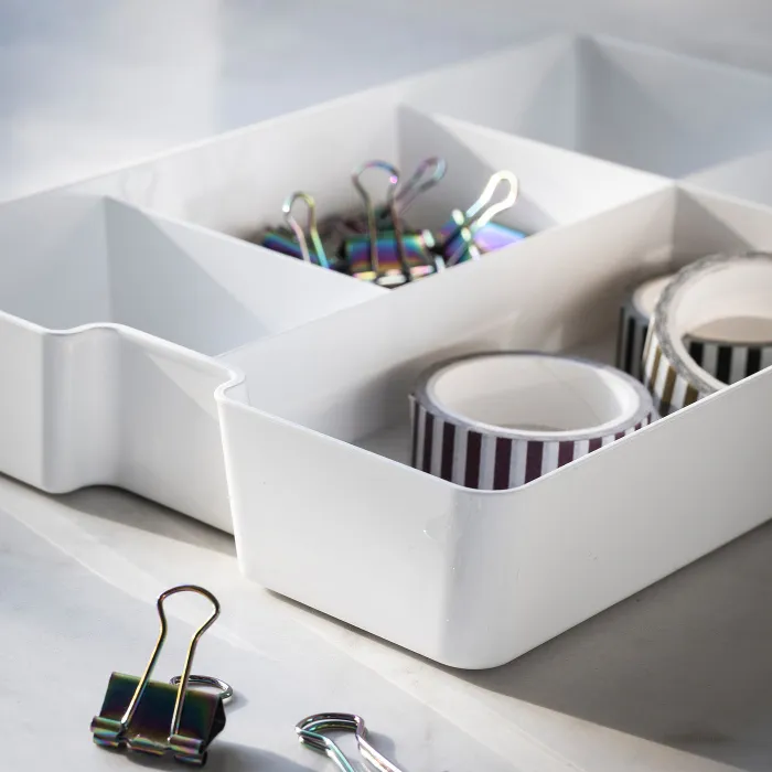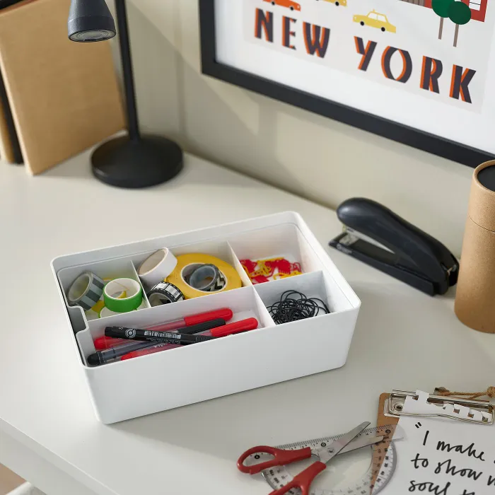 Ви можете використовувати цей маленький вкладиш як окрему ємність або вставляти його в ящики KUGGIS ємністю 3 або 5 літрів. Практичне рішення для товарів для мистецтва чи офісних аксесуарів, яке допоможе вам організувати дрібні предмети.