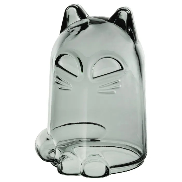 Зроблений з темно -сірого скла, купол у формі кота може бути прикрасою на підвіконні, столі або полиці.