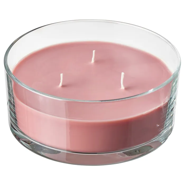 IKEA LOTSFÅGEL(606.079.96) ароматична свічка в склі/3 гноти, червоні ягоди світло-рожеві