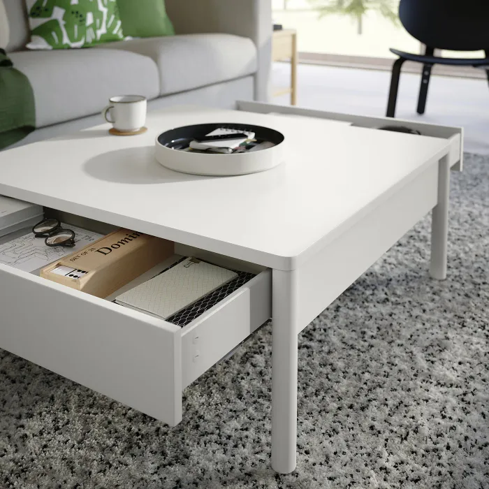 У серії Tonstad класичний дизайн поєднується з прекрасною обробкою в кремовому кольорі, що надає меблям благородний вигляд. На журнальному столику є два тихо закриваються ящики, по одному з кожного боку, що забезпечує багато варіантів зберігання.