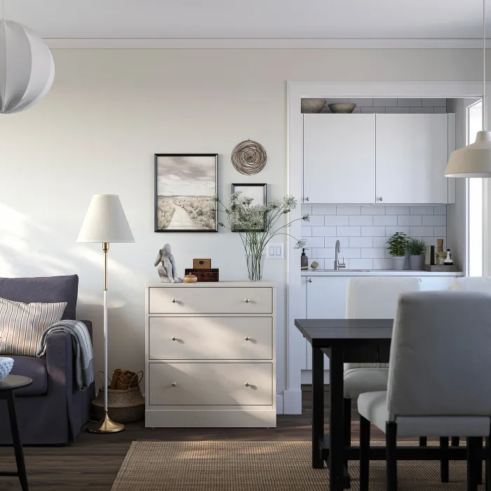 Скандинавський дизайн з чистими, простими лініями полегшує поєднання комода з меблями в різних стилях.