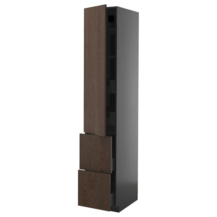 Метод методів дає необмежені можливості розробити кухню мрії. У поєднанні з темно -коричневими фронтами SINARP з твердими краївами деревини ви отримаєте кухню, повну характеру та дрібні деталі.