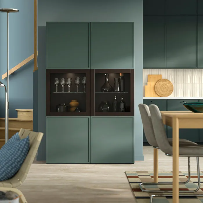 IKEA BESTÅ(195.977.64) полиця/скляні двері, чорно-коричневий/Крукмакаре темно-сіро-зелений