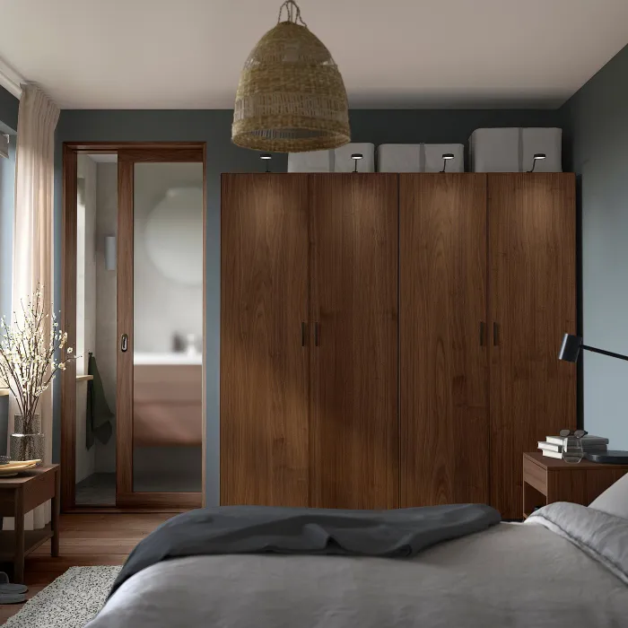 IKEA PAX / BJÖRNESKOGEN(395.753.65) комбінований гардероб, темно-сірий/горіховий шпон