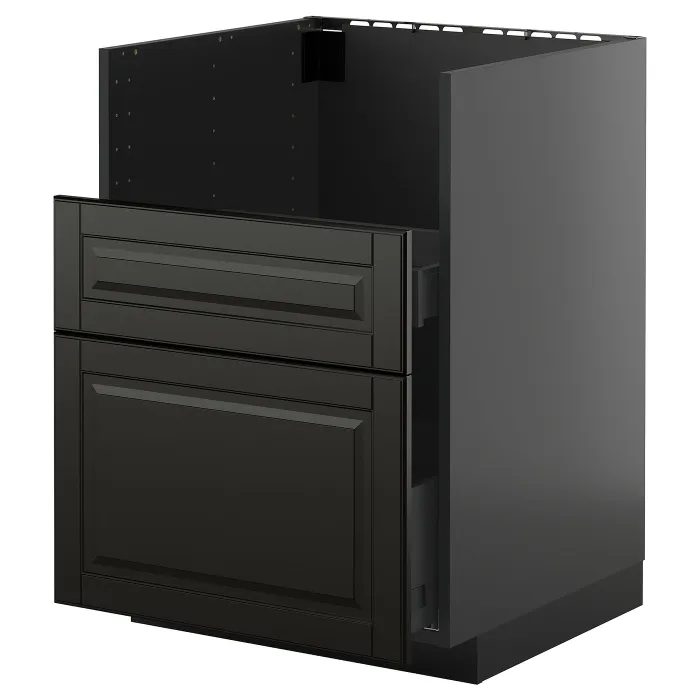 Система METOD надає вам необмежені можливості для проектування кухні вашої мрії. У поєднанні з чорними фасадами BODBYN зі скошеними краями він вражає своєю теплою естетикою та витонченістю.