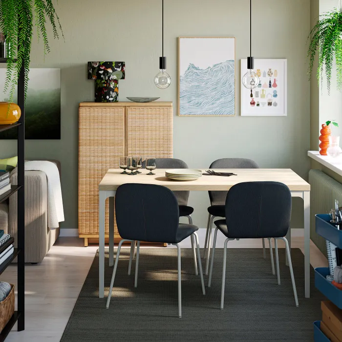Мрієте про обідній набір, який ідеально підійде саме вам? У серії SKÅLSTA ви можете вибрати готовий набір, наприклад цей, або поєднати сидіння з каркасом стільців і стільницю з ніжками столу. І все це за ціною, перед якою важко встояти!