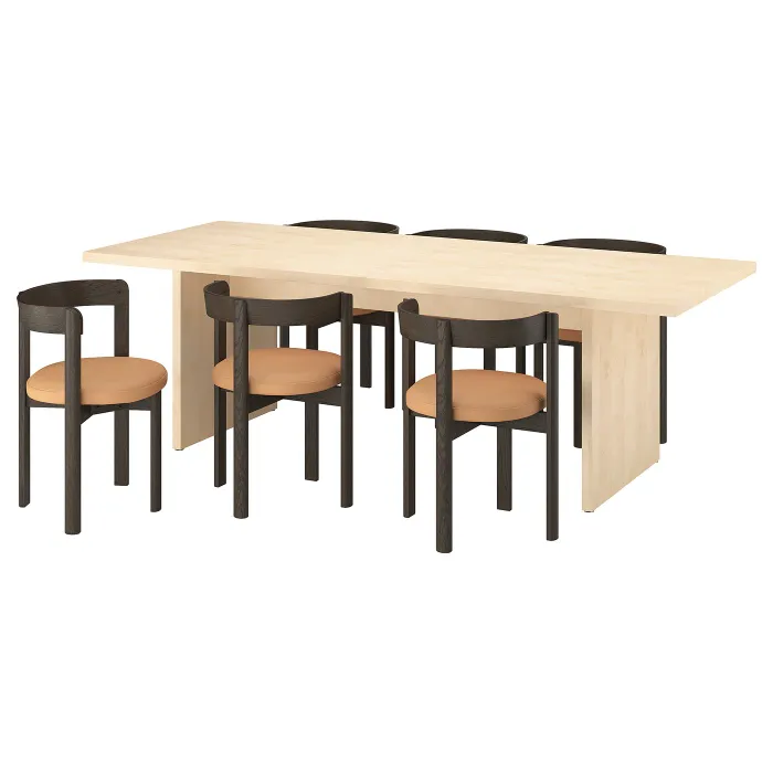 IKEA BERGSHYTTAN / STOCKHOLM 2025(496.084.07) стіл і 6 стільців, ефект фарбування береза/шкіра темно-коричневий
