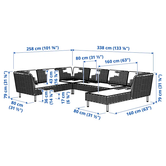 | Ширина дивана з правого боку | 338 см |