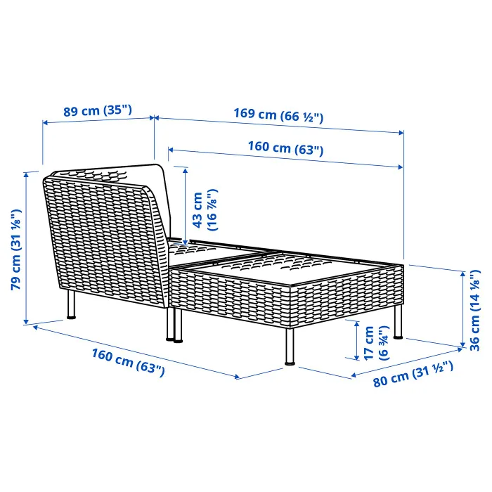 IKEA VITTSKÄR(595.912.70) модульний шезлонг, з підлокітником зовні/техноротанг темно-сірий