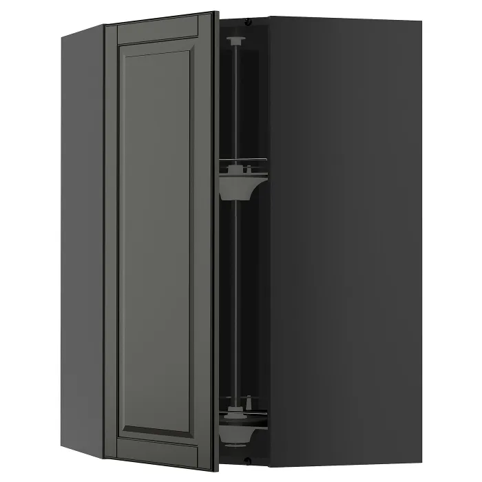 IKEA METOD(695.888.04) кутова навісна шафа з каруселлю, чорний сірий/Bodbyn чорний