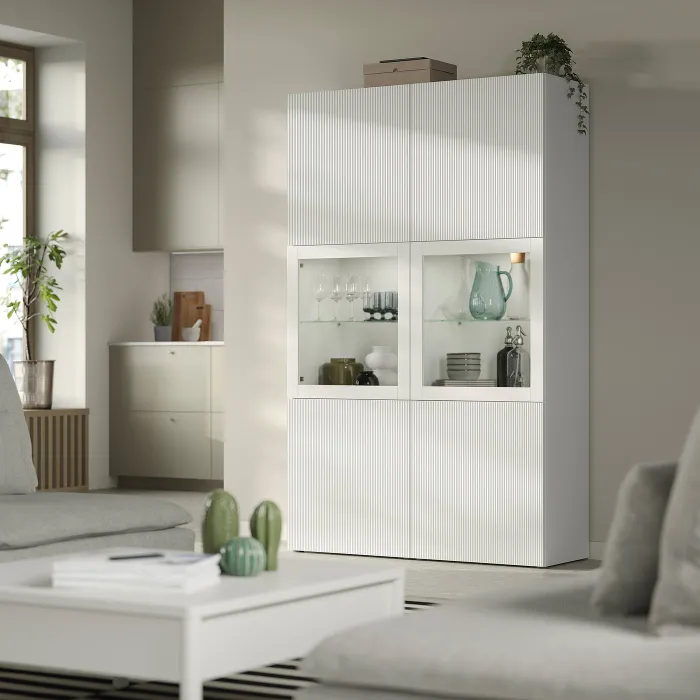 IKEA BESTÅ(695.978.46) полиця/скляні двері, білий/Förvaltare білий