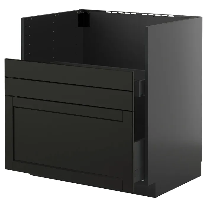 Система METOD надає вам необмежені можливості для проектування кухні вашої мрії. У поєднанні з фарбованими в чорний колір фасадами LERHYTTAN зі скошеними краями ваша кухня придбає теплий і традиційний характер.