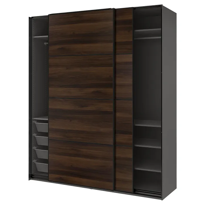 IKEA PAX / MEHAMN(796.303.60) шафа з розсувними дверима, темно-сірий чорний/двостороння імітація темно-коричневого дуба