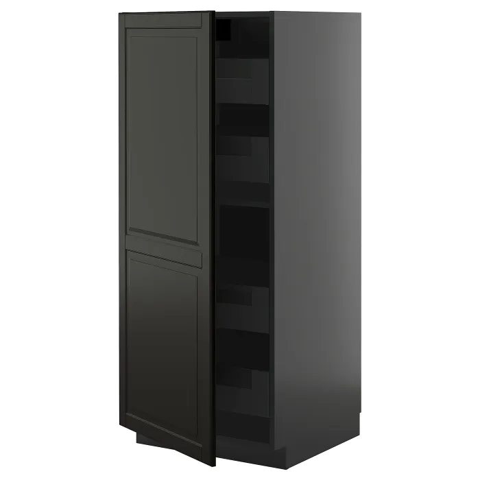 IKEA METOD / KNIVSHULT(895.881.10) висока шафа з ящиками, чорний сірий/Bodbyn чорний
