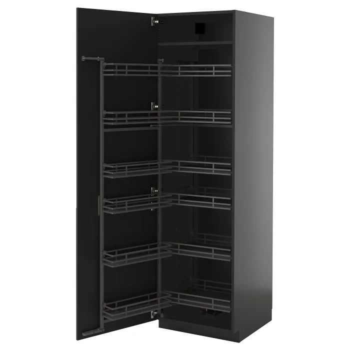 IKEA METOD(895.886.95) висока шафа з висувною коморою, чорно-сірий/Nickebo матовий антрацит