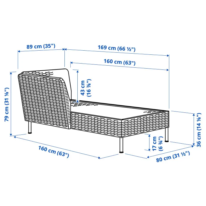 IKEA VITTSKÄR(895.912.59) модульний шезлонг, з підлокітником зовні/техноротанг темно-сірий