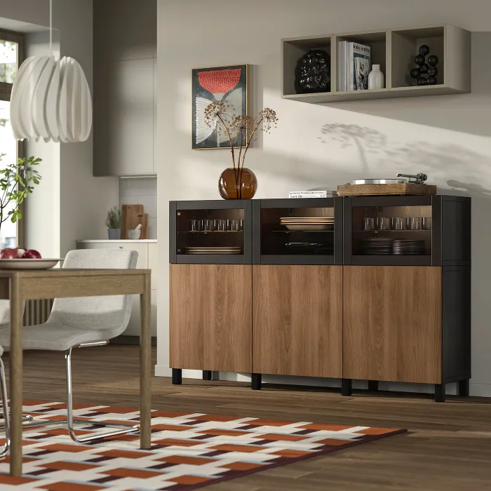 IKEA BESTÅ(896.122.33) поєднання з дверима, чорно-коричневий горіх Lappviken/Sindvik