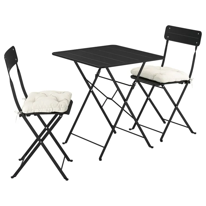 IKEA SUNDSÖ(995.730.28) стіл і 2 розкладні стільці, зовні антрацит/Kuddarna світло-сіро-бежевий антрацит