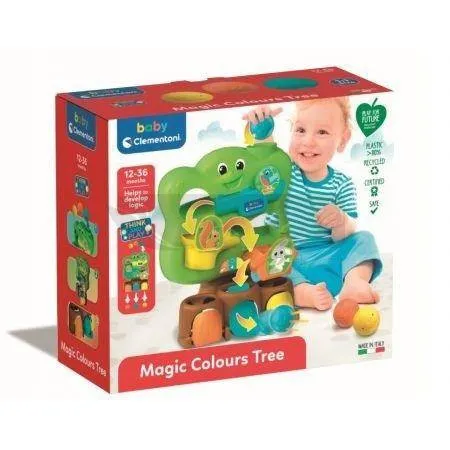 Веселе дерево з трьох кульок з механізмом скидання кульок. Кожна кулька опиниться у дверях того ж кольору, що стимулює логіку причинно-наслідкового зв'язку.
