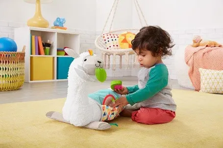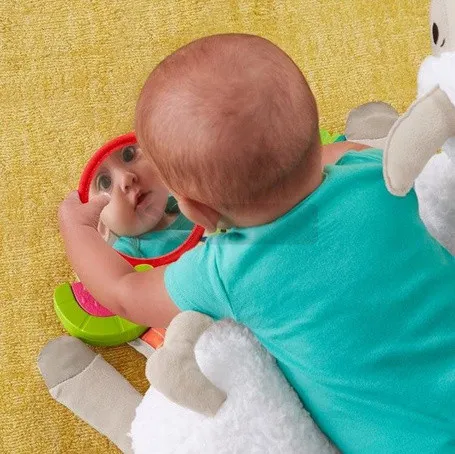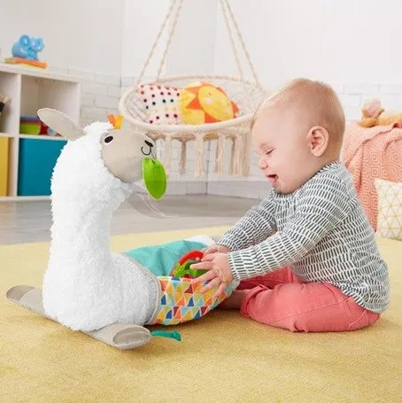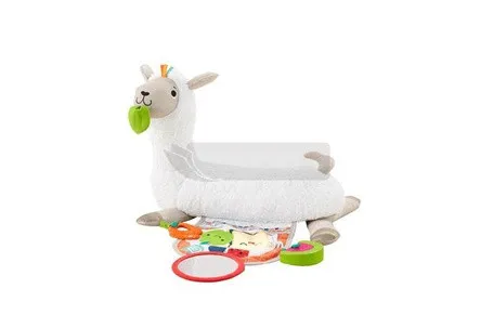 Ця доброзичлива лама пропонує чотири способи гри, поки ваша дитина росте. М'який валик допомагає дитині підтримувати правильне положення на різних етапах розвитку – від лежання на спині, часу на животику, до сидіння та ходьби з м'якою іграшкою. Набір також включає двосторонній міні-килимок для гри з кишенею для того, щоб класти та діставати речі, та три іграшки, включаючи дзеркальце, яке можна прикріпити до листка в роті лами або до міні-килимка для гри! Ця м'яка лама забезпечує вашому маленькому досліднику чудову зорову, слухову та тактильну стимуляцію. Цікаве заняття, яке розвиває. Сенсорика: Завдяки різноманітним матеріалам, які ваша дитина може торкатися та досліджувати, ця іграшка допомагає розвивати її почуття. Велика моторика: Лама підтримує вашу дитину, коли вона піднімає голову та встає під час часу на животику, зміцнюючи м'язи шиї та кора. Самосвідомість: Хто ця чарівна малеча? Дзеркальце, яке можна прикріпити до різних місць, допомагає вашій дитині розвинути відчуття себе – так, це обличчя, на яке ви дивитеся, ваше, крихітко!