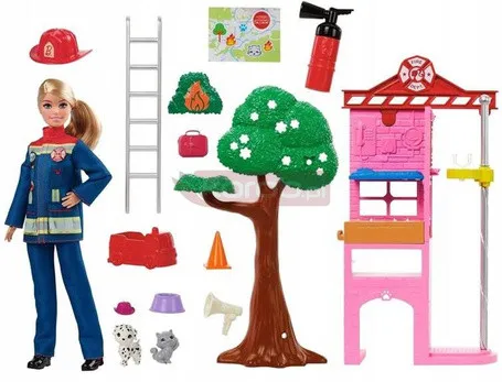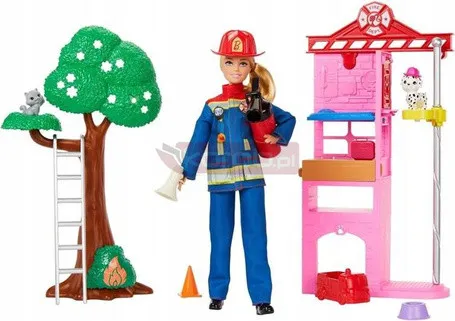 Ігровий набір для ляльки Барбі-пожежниці з пожежною станцією та собакою HRG55