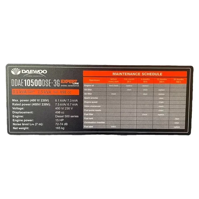 генератор дизельный Daewoo DDAE10500DSE-3G оснащен профессиональным двигателем от Daewoo. Мотор предварительно проходит предварительную обкатку и при получении полностью готов к эксплуатации.