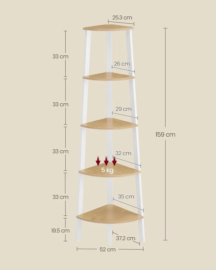 Кутова полиця з 5 полицями Light Oak 159 см
