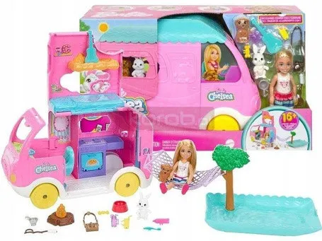 Лялька Барбі Челсі у фургоні для відпочинку + аксесуари для собаки-кролика HNH90