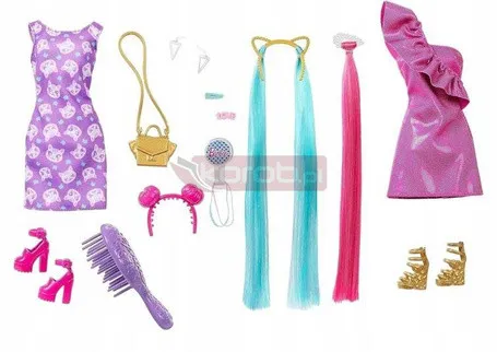 Лялька BARBIE TOTALLY HAIR DOLL з довгим волоссям + сукня + аксесуари HKT96