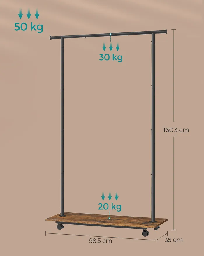 Мобільний вішак для одягу 160,3 см сільський коричневий