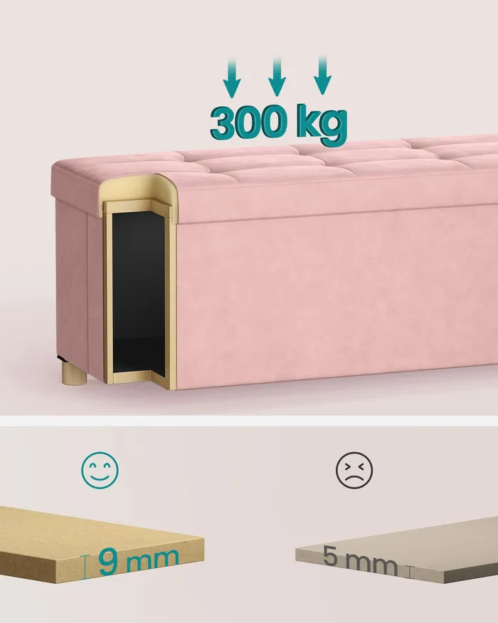 Стьобаний рожевий пуф із шухлядою для зберігання 112 л.