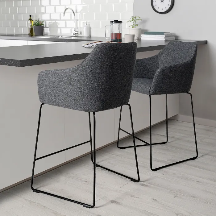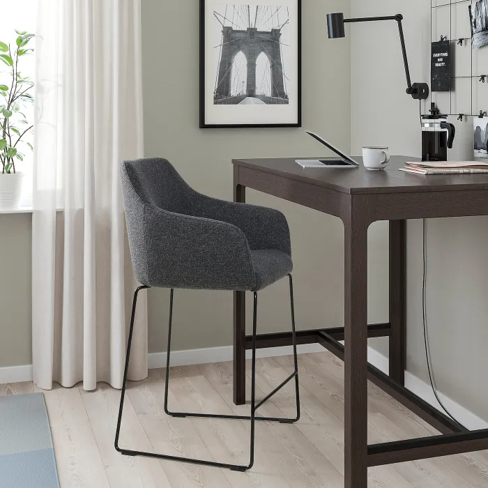IKEA TOSSBERG(005.682.38) Барний стілець зі спинкою, металевий чорний/гарматний темно-сірий