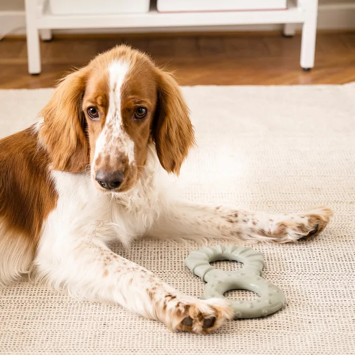 Виготовлений з міцної натуральної гуми, яка делікатна для собачих зубів і ясен.